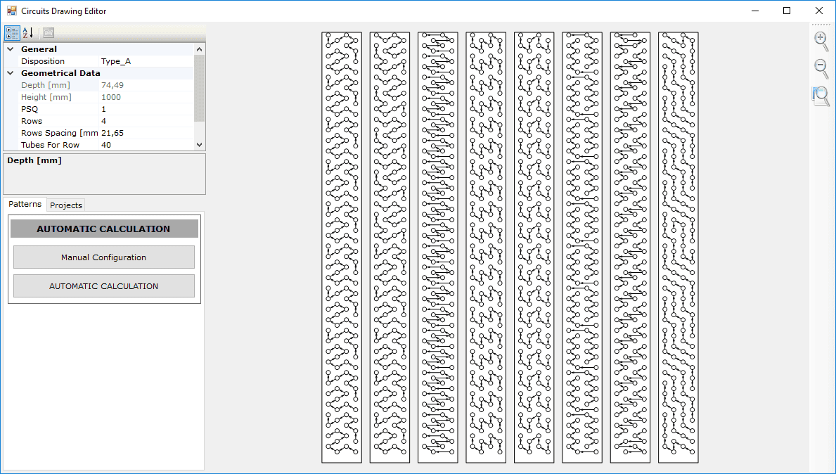 All’apertura sarà possibile vedere la batteria in 2D, 3D e il disegno del collettore. Se clicchiamo sul pulsante circuiti, EASY ci proporrà la possibilità di editare numero circuiti, tubi in serie e di scegliere addirittura di scremare i risultati secondo la lunghezza della forcina.