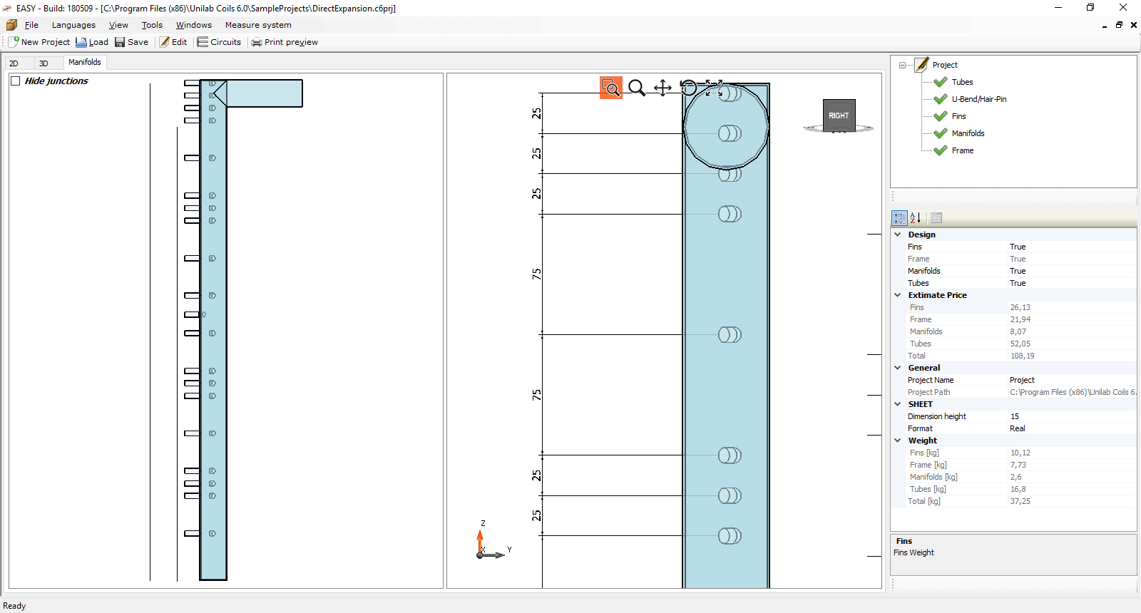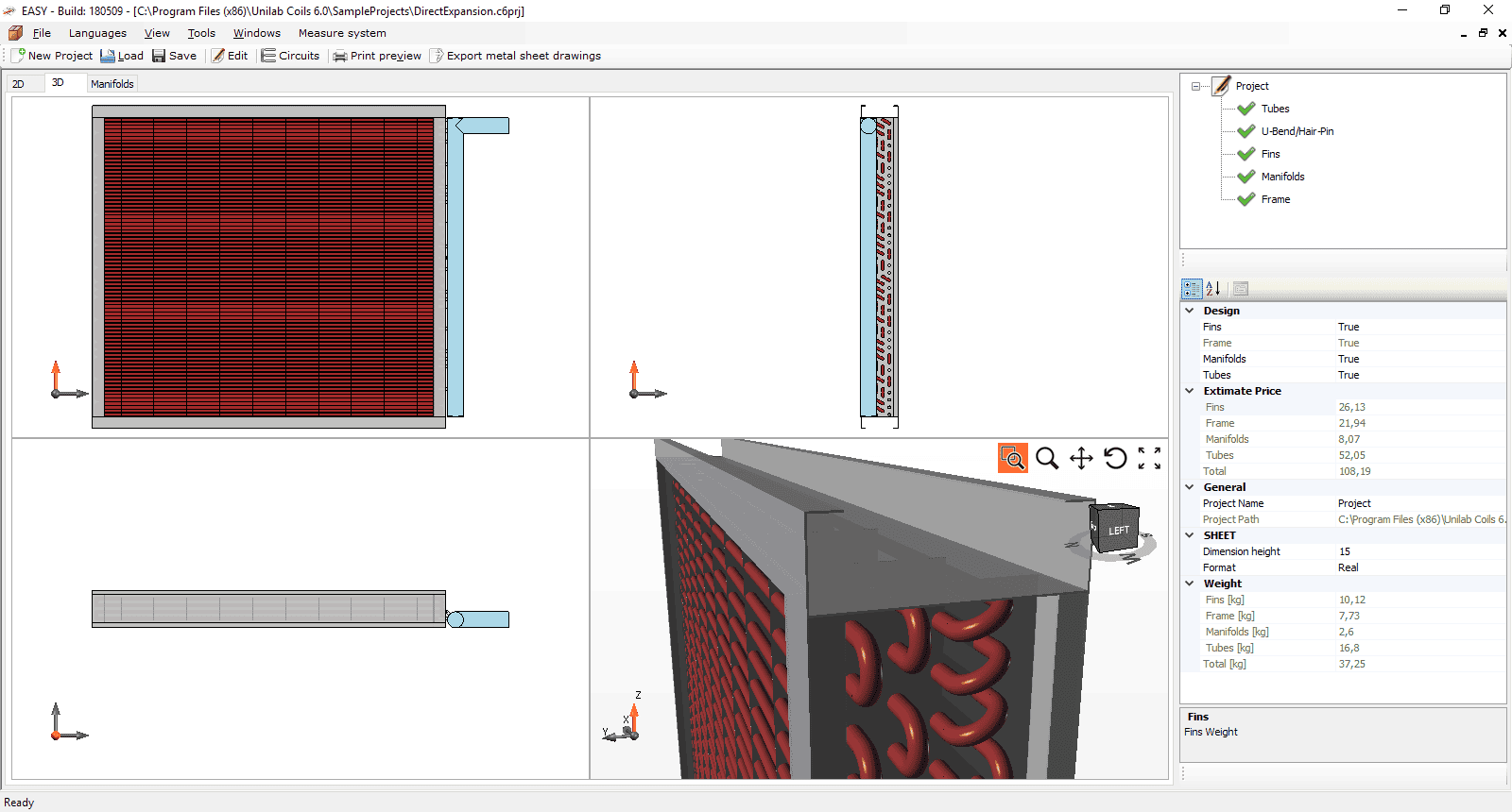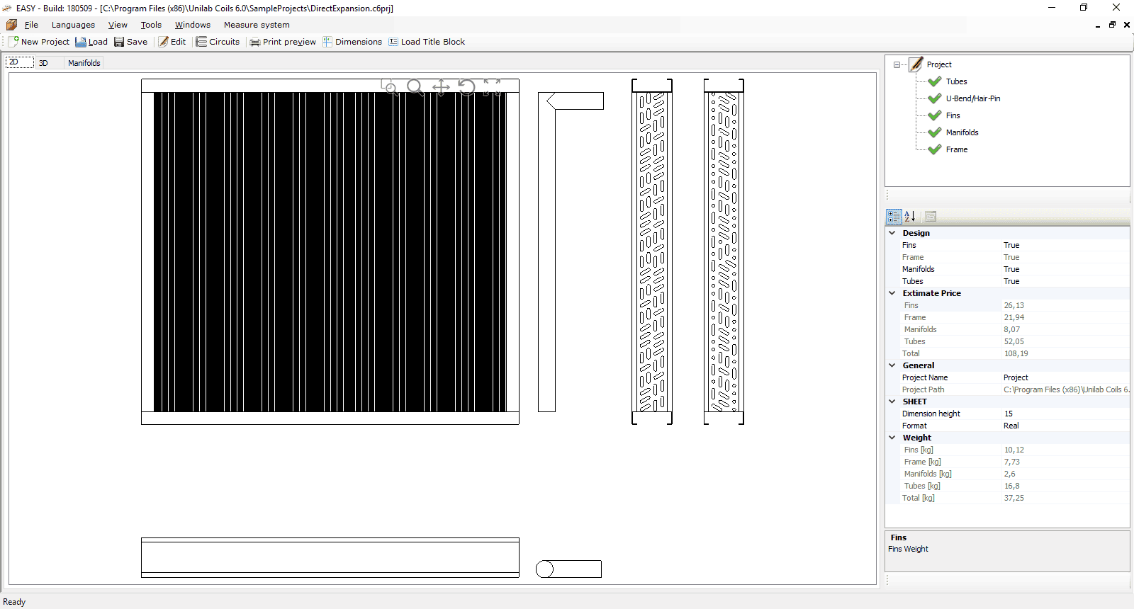 Questo software permette sia importando i dati provenienti da un calcolo di UNILAB COILS, sia in modo indipendente, di creare tutte le informazioni necessarie per il disegno costruttivo di tutti gli elementi di una batteria di scambio termico, quali telaio e collettori. Inoltre tale programma viene arricchito da una procedura che consente di creare in modo completamente automatico la circuitazione richiesta scegliendola tra una o più soluzioni. Completano il software, il disegno in 3D, la messa in tavola e la possibilità di esportare i disegni in svariati formati riconosciuti dai più comuni programmi di disegno tridimensionale.