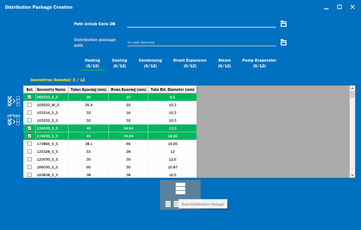 L’utente potrà scegliere, direttamente dalle geometrie create con COILS, fino a 12 geometrie per tipologia, e generare un file condivisibile con un particolare set di geometrie.