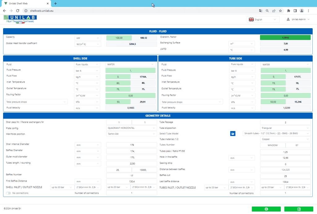 Con questo in mente, Unilab ha sviluppato SHELL WEB, la piattaforma di Design & Rating as a Service di Unilab. SHELL WEB è il nuovo Software Online di Unilab per la progettazione e il dimensionamento di Scambiatori di Calore a Fascio Tubiero accessibile tramite Browser, da qualsiasi dispositivo (PC, Mac, Tablet o iPad) che ti consente di eseguire la progettazione da zero e la verifica degli scambiatori di calore a fascio tubiero in modo indipendente. Non è necessaria alcuna installazione: basta accedere a un’area sicura con il proprio nome utente e password, e si è pronti a partire.